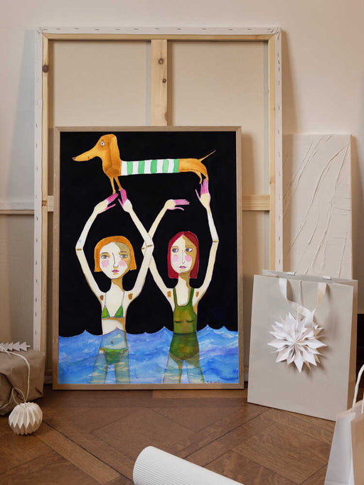 View full detailsSwimming Girls with Sausage Dog by Sharyn Bursic Bring timeless design and high quality artworks to your assortment with our curated wall art coll...