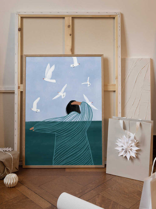 View full detailsLady sitting with white dove bird woman by Sharyn Bursic Bring timeless design and high quality artworks to your assortment with our curated wall ...