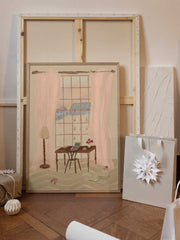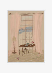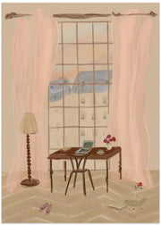 Paris Window View Illustration with Rustic Desk by Katharina Puritscher