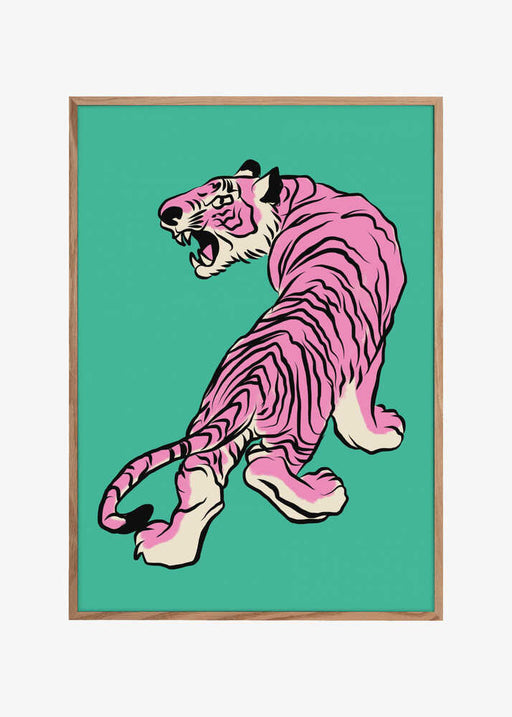 View full detailsPink Tiger Against A Teal Background by Little Dean Bring timeless design and high quality artworks to your assortment with our curated wall art c...