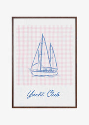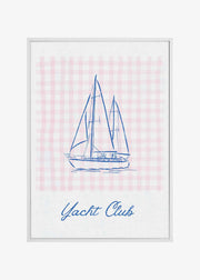 Minimalist Blue Line Drawing of a Yacht by Jolly and Dash